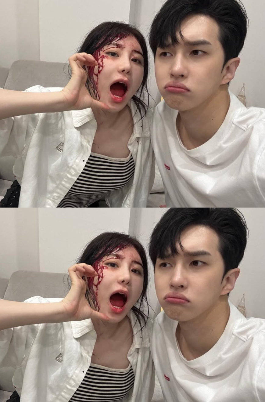 이채연은 16일 자신의 인스타그램에 “사코죽타”라는 글과 함께 여러 장의 사진을 게재했다. 특히 첫 번째로 공개된 사진에는 피가 묻고 상처투성이가 된 얼굴이 담겨 팬들을 깜짝 놀라게 했다.