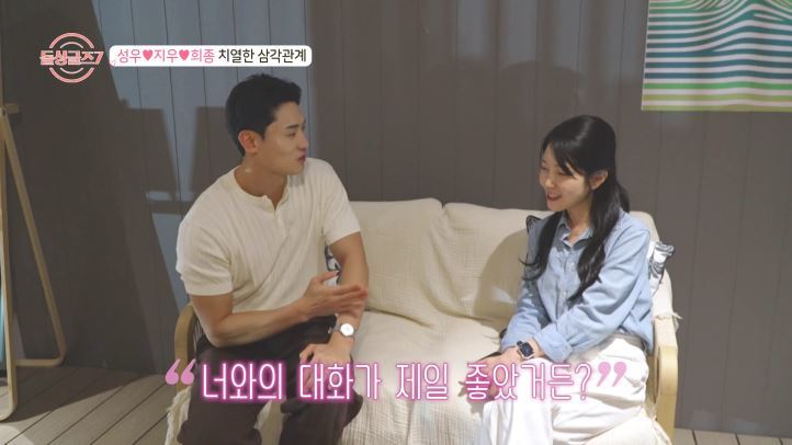 다음 날, 남자들이 선택하는 ‘비밀도장 데이트’가 진행됐다. 모두가 예측한 대로 도형·인형은 명은을, 동건은 아름을 선택했다. 희종과 성우 역시 지우를 택한 반면, 수하와 예원이 ‘0표’로 숙소에 남아야 했다. 희비가 교차된 상황 속, ‘2:1 데이트’를 하게 된 희종은 성우와 은근한 신경전을 벌였다. 이들은 양조장에서 각자의 취향대로 ‘진’ 만들기를 했는데, 희종은 성우보다 재빠르게 지우를 챙겼고, 성우가 잠시 자리를 비우자 희종은 지우와 가까운 거리에 살고 있다는 점을 적극 어필했다. 성우 역시 지우와 단둘이 있을 때 “마지막까지 널 선택하고, 네 옆에 있을 것”이라며 확신을 심어줬다. 데이트 후 숙소로 돌아가기 위해 차를 타는 과정에서 희종은 뒷자리에 탑승하려는 성우의 차 문을 제대로 열어주지 않아 또 한 번 신경전이 일어났다. 직후 성우는 제작진과의 속마음 인터뷰에서 “짜증이 났다. 모든 상황이 다 꼬인 것 같았다”라며 불편한 속내를 드러냈다.