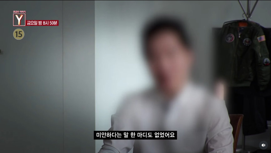 다른 남성 역시 “선배가 때리면 맞아야지”라고 주장한다. 제작진이 누군가 통화하면서 상대방이 “전치 3주인가”라고 언급한다. 처음 증언한 남성은 “미안하다는 말도 없어요”라고 말한다.