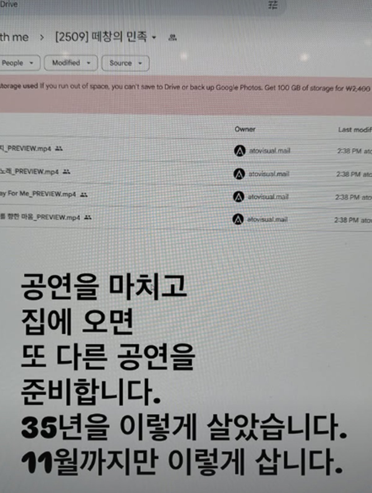 그러면서 “공연의 A부터 Z까지 모든 일을 도맡아서 하고, 매년 서너개의 공연을 만들던 제가 당분간 공연을 만들지 않겠다는 거였어요. HEAVEN 공연 첫 멘트 내용입니다. 작년 11월부터”라고 설명했다.