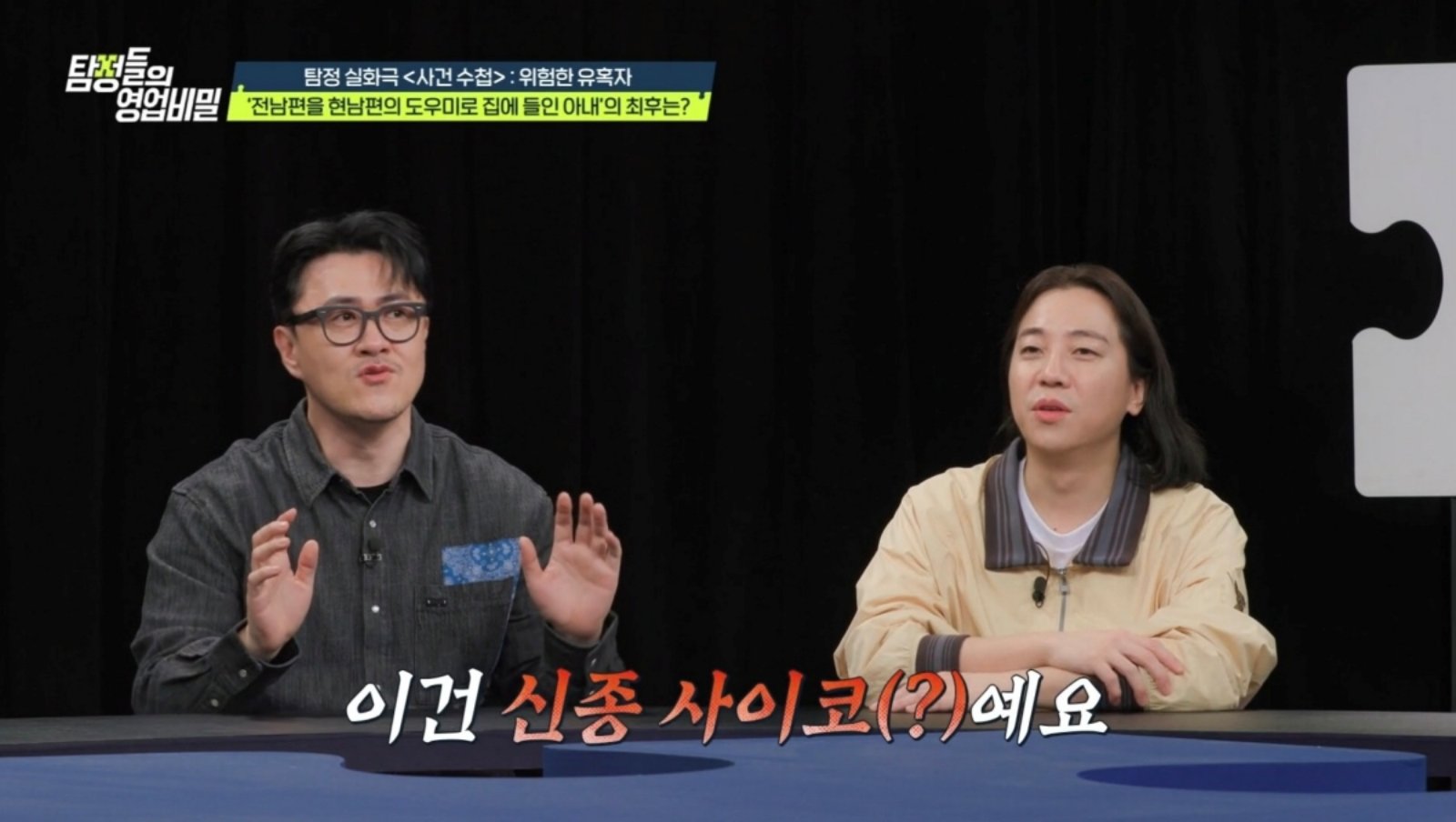 모든 사실이 드러나자 의뢰인의 아내는 “불쌍해서 그랬다, 도와달라는 말을 거절할 수 없었다”며 눈물로 호소했다. 그러나 김풍은 “동정을 사랑이라고 착각하는 것”이라고 일침을 날렸고, 데프콘은 “이건 신종 사이코다”라며 경악했다. 남성태 변호사는 “자신이 타인을 구원할 수 있다고 믿는, 일종의 ‘구원자 콤플렉스’”라고 분석하며 소름 끼치는 진단을 내놨다.