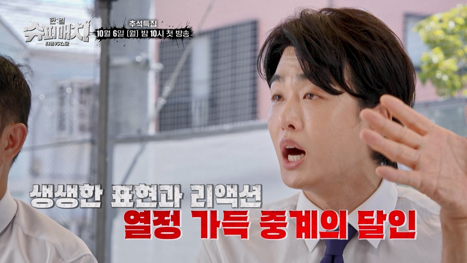 6일과 7일 밤 10시 방송되는 추석특집 ‘한일슈퍼매치’ 예고편은 역사적인 한일전의 시작을 알렸다. 스모 선수들과 대결하는 씨름 최초 국가대표가 된 한국 천하장사들은 “씨름을 대표하는 선수들이 다 모였다”며 자신만만했다. 또 일본과의 피 끓는 맞대결을 두고 “가슴에 태극기를 달았기 때문에 절대 지지 않을 거다”라며 결의를 다졌다.