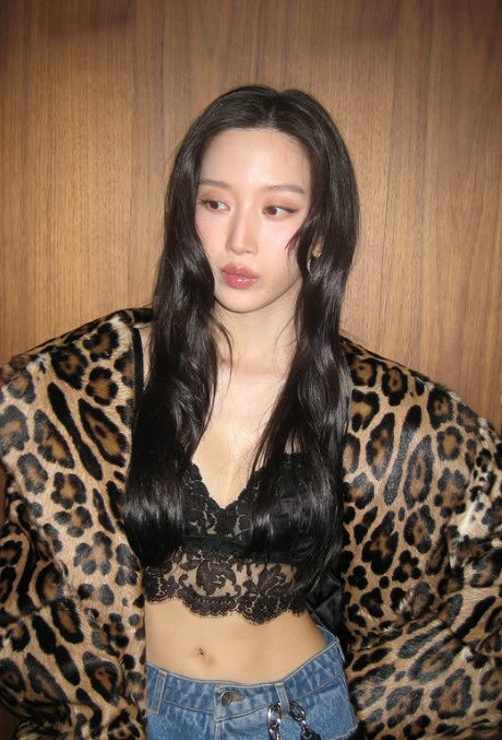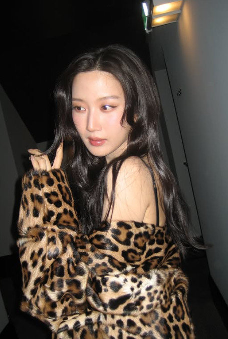 공개된 사진 속 문가영은 블랙 란제리에 호피 무늬 아우터를 걸쳤다