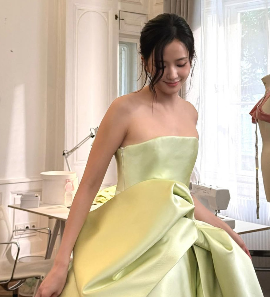 지수는 최근 자신의 인스타그램을 통해 프랑스 파리에서 진행되는 한 명품 브랜드 행사를 앞두고 현지에서 진행된 의상 가봉 현장을 공개했다.