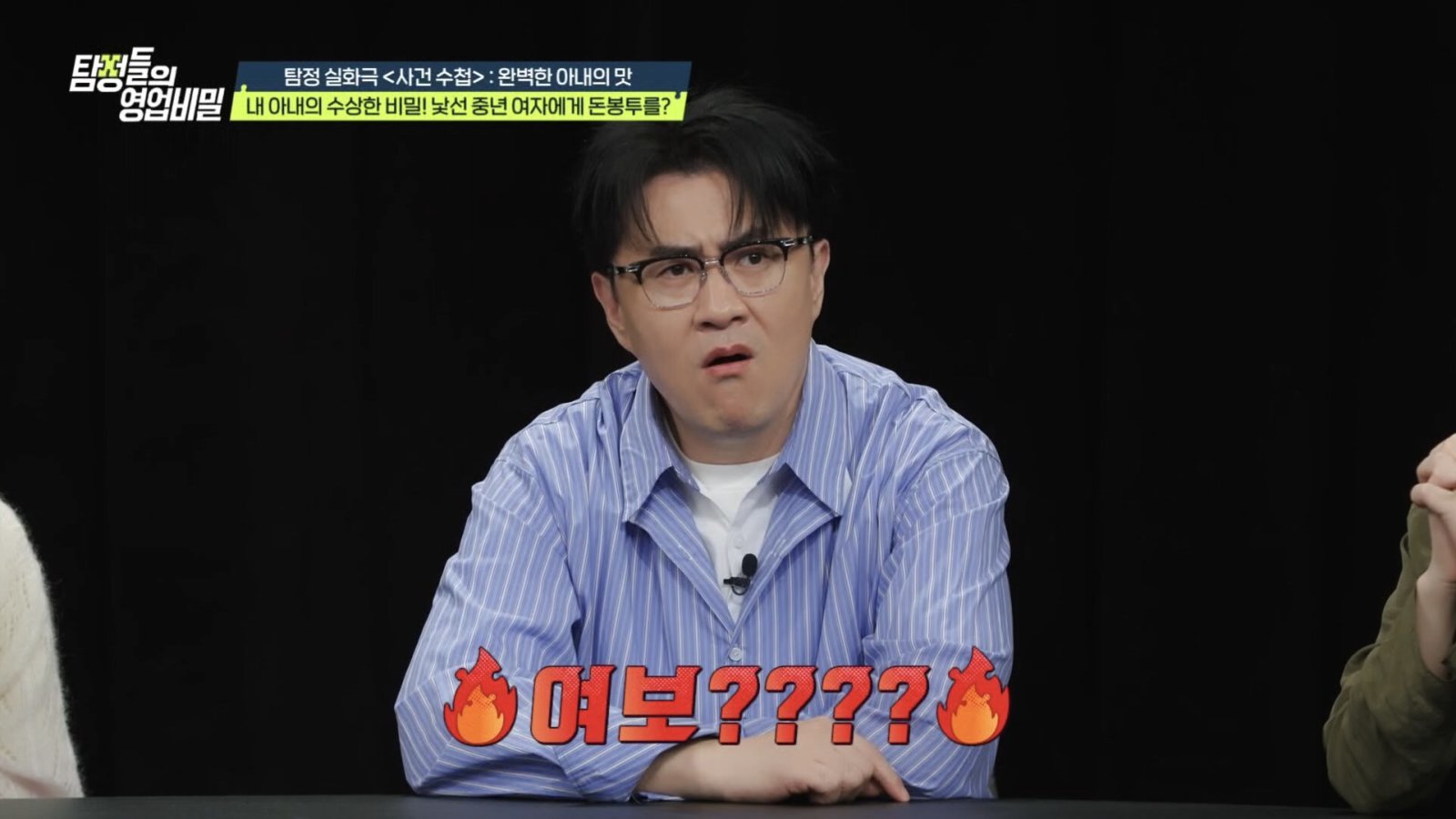 24일 방송된 채널A ‘탐정들의 영업비밀’의 ‘사건수첩’에는 ‘19금 토크 1인자’ 정미녀가 일일 탐정으로 함께한 가운데 한 남성이 “6개월간 부부 관계가 없었는데 아내가 임신한 것 같다”며 탐정단을 찾아왔다. 아내가 “두 달째 생리를 안 한다”며 지인과 통화하는 것을 우연히 들었다는 것.