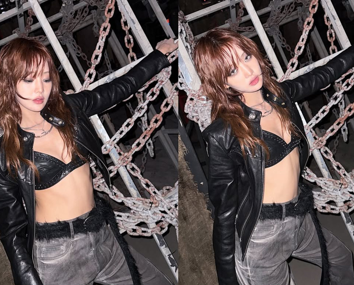 사진 속 민니는 블랙 가죽 브라 톱에 재킷을 매치한 파격적인 스타일로 시선을 사로잡았다. 체인으로 연출된 거친 무드의 공간과 어우러진 콘셉트는 민니 특유의 카리스마를 극대화했다. 민니는 과감한 스타일링에도 흔들림 없는 표정과 포즈로 완성도를 높였다.