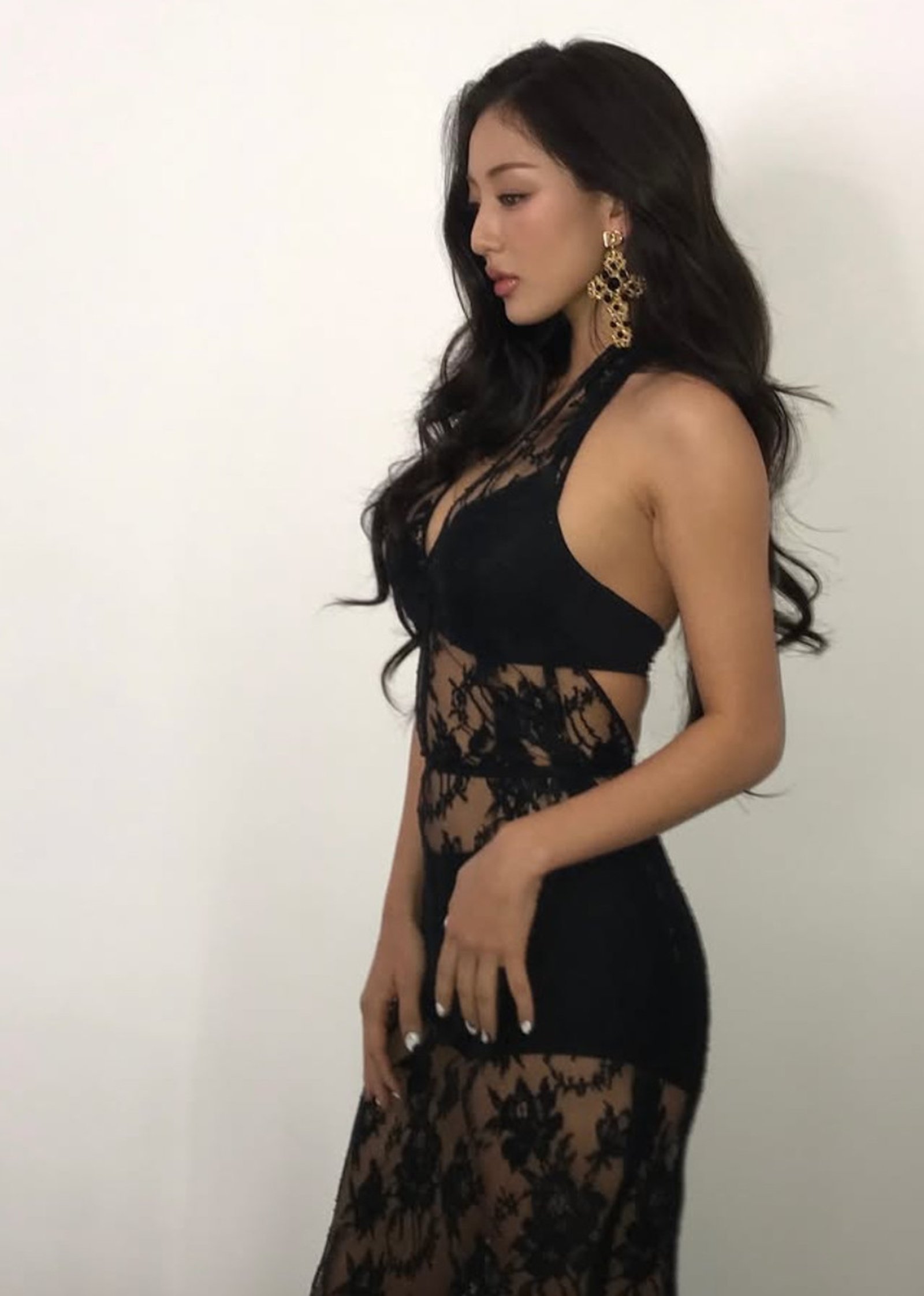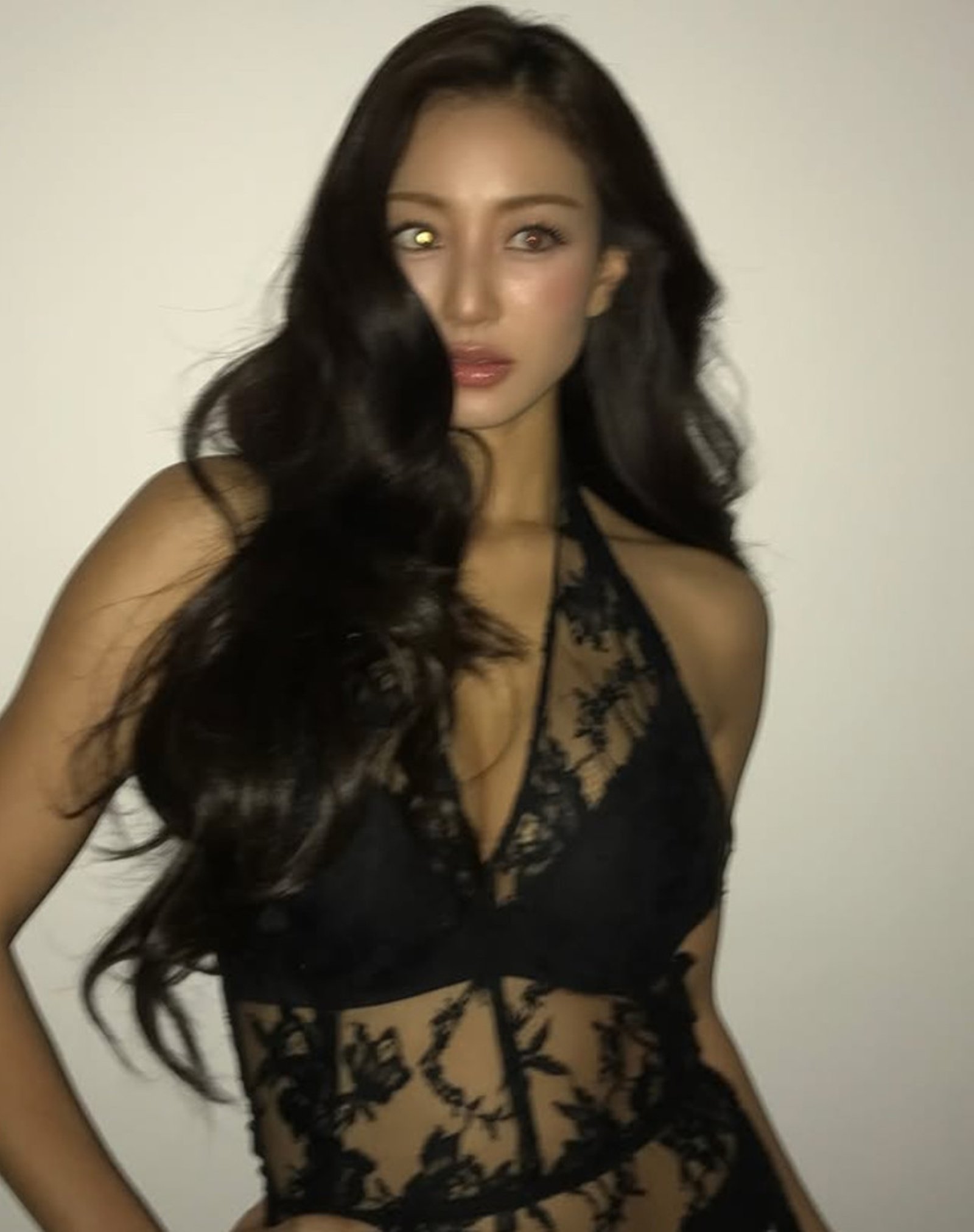 사진 속 지효는 검은색 속옷과 전신 시스루 원피스를 매치해 섹시하면서도 고혹적인 분위기를 연출했다. 앞, 뒤, 옆태 모두 꽉 찬 지효만의 몸매 라인이 눈길을 끄는 가운데 이국적인 메이크업도 강렬함을 선사했다.