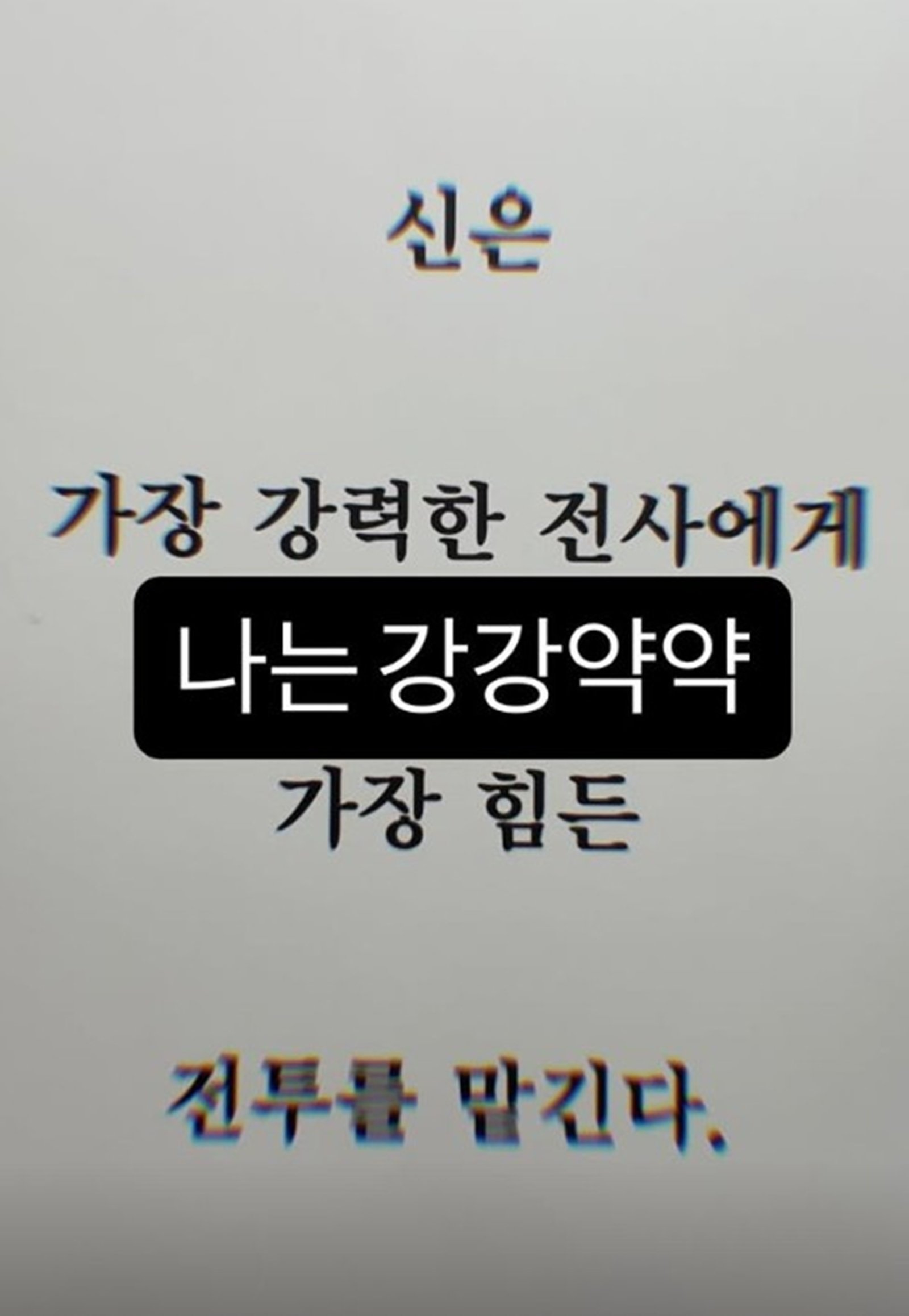 이어 ‘신은 가장 강력한 전사에게 가장 힘든 전투를 맡긴다’는 문구를 배경으로 “나는 강강약약”이라는 글을 덧붙여 의미심장한 메시지를 남겼다.