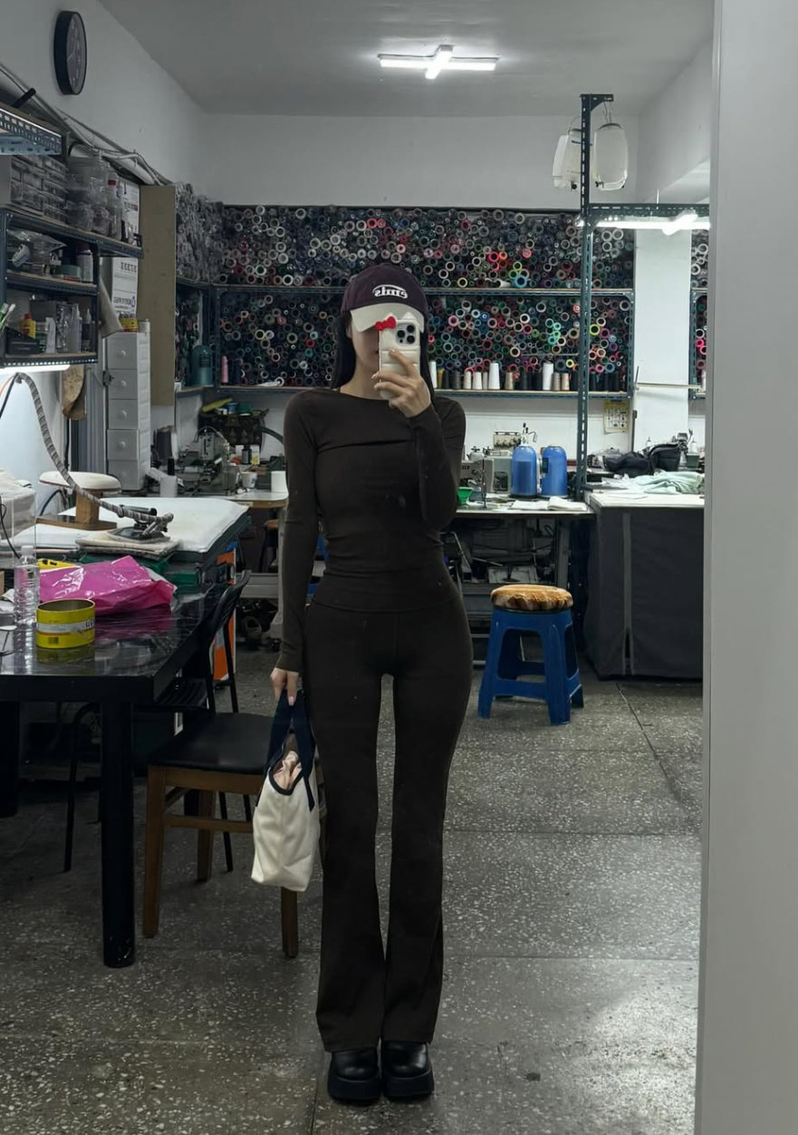 특히 브라운 계열의 원톤 상·하의를 매치한 스타일링이 눈길을 끈다. 전신 레깅스를 연상케 하는 슬림한 핏의 의상은 몸매 라인을 그대로 드러내며, 군살 없이 정돈된 실루엣을 강조했다. 자연스럽게 드러난 골반 라인과 균형 잡힌 비율이 시선을 사로잡았다.